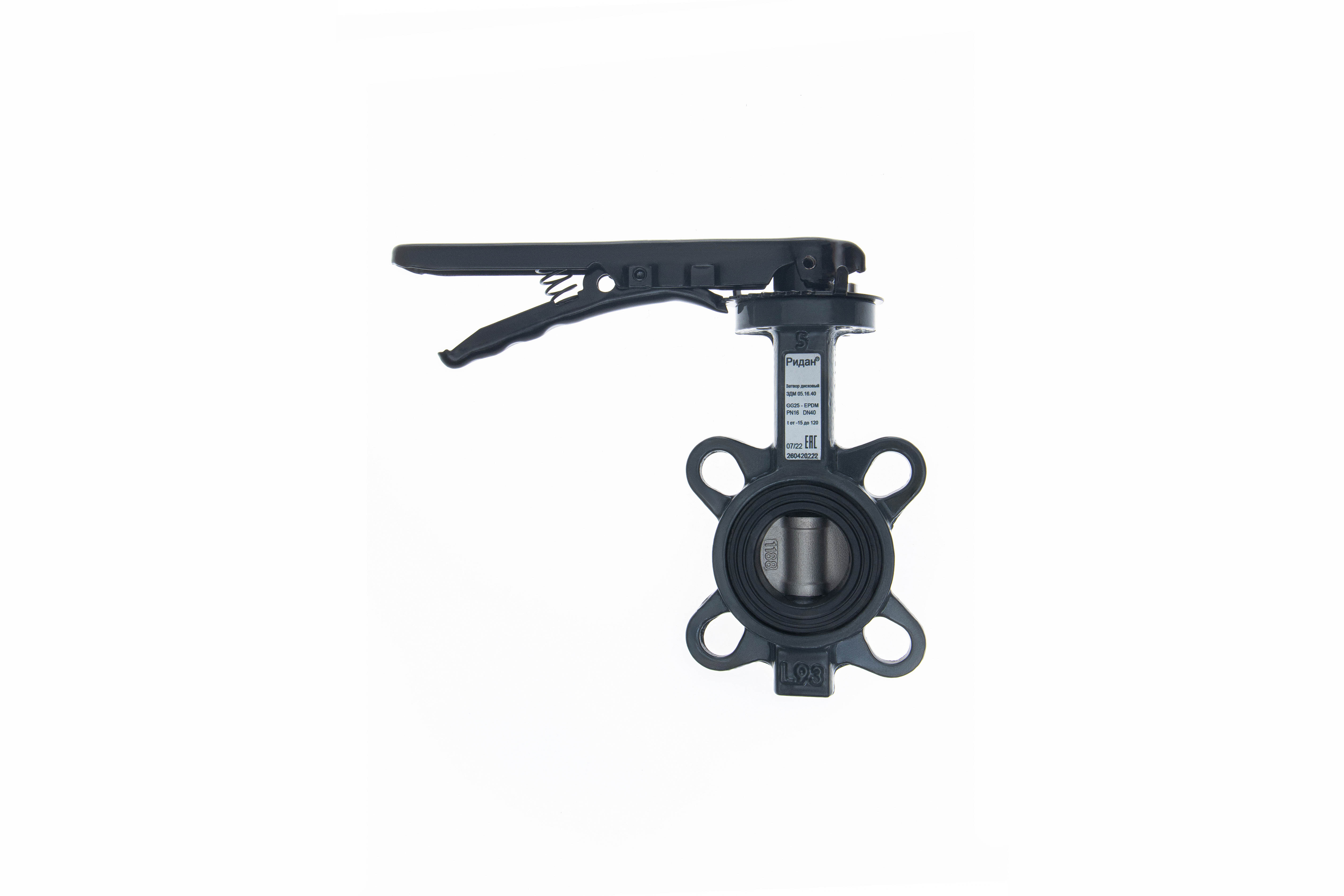 Ридан 082X4426R — Затвор дисковый поворотный ЗДМ 05.16.150, PN16, DN150, корпус GG25, диск — нержавеющая сталь AISI316, уплотнение EPDM