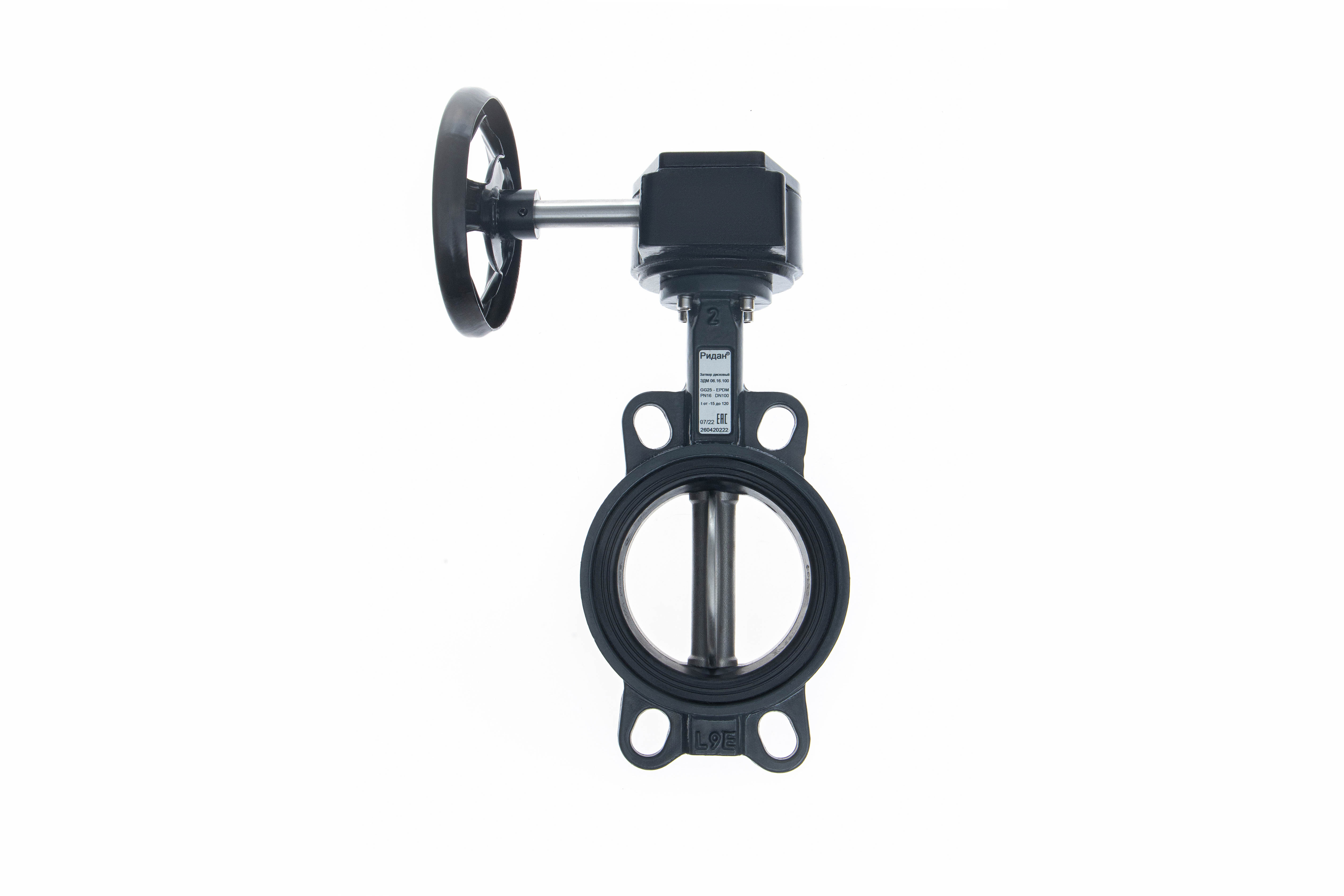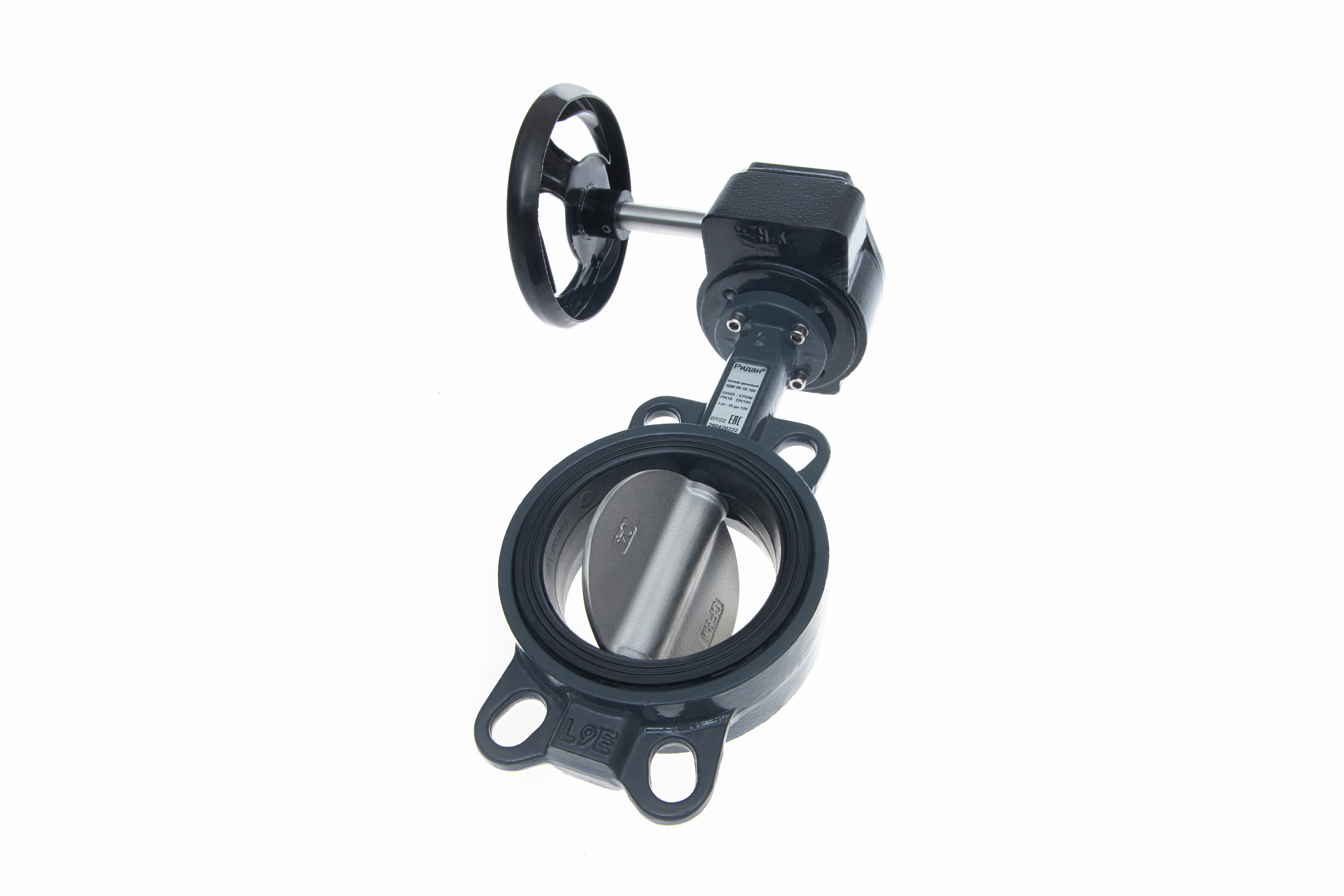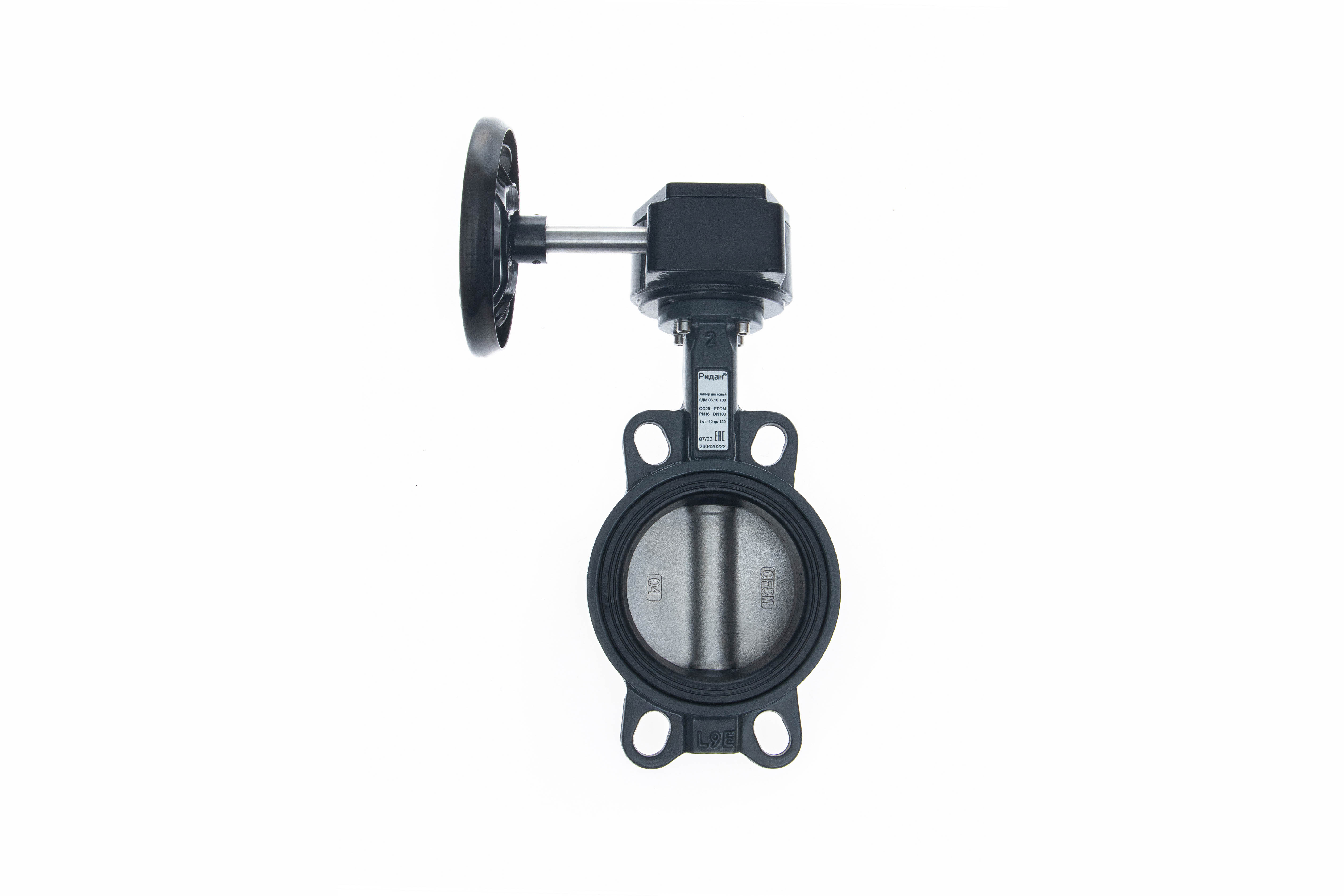 Ридан 082X4438R — Затвор дисковый поворотный ЗДМ 06.16.500, PN16, DN500, корпус GG25, диск — нержавеющая сталь AISI316, уплотнение EPDM, с ручным редукторным приводом