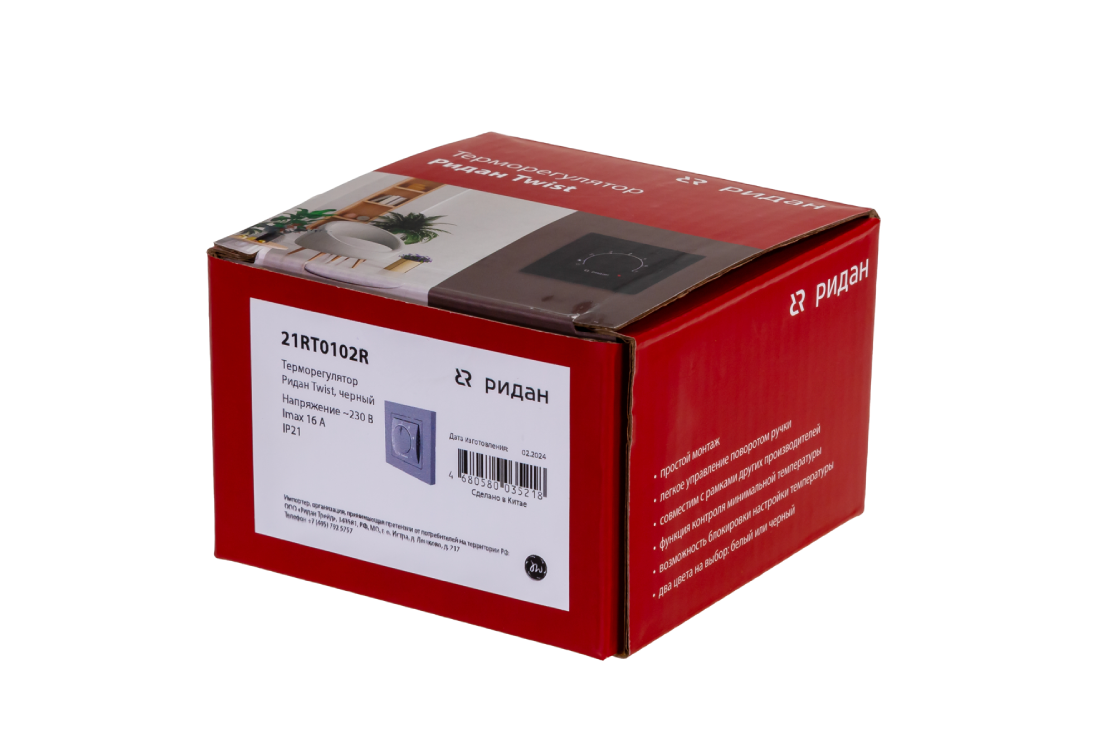 Ridan 21RT1087R — Розничный комплект для теплого пола: нагревательный мат Ridan TF-200 10 м² с терморегулятором Ridan Twist (черный)