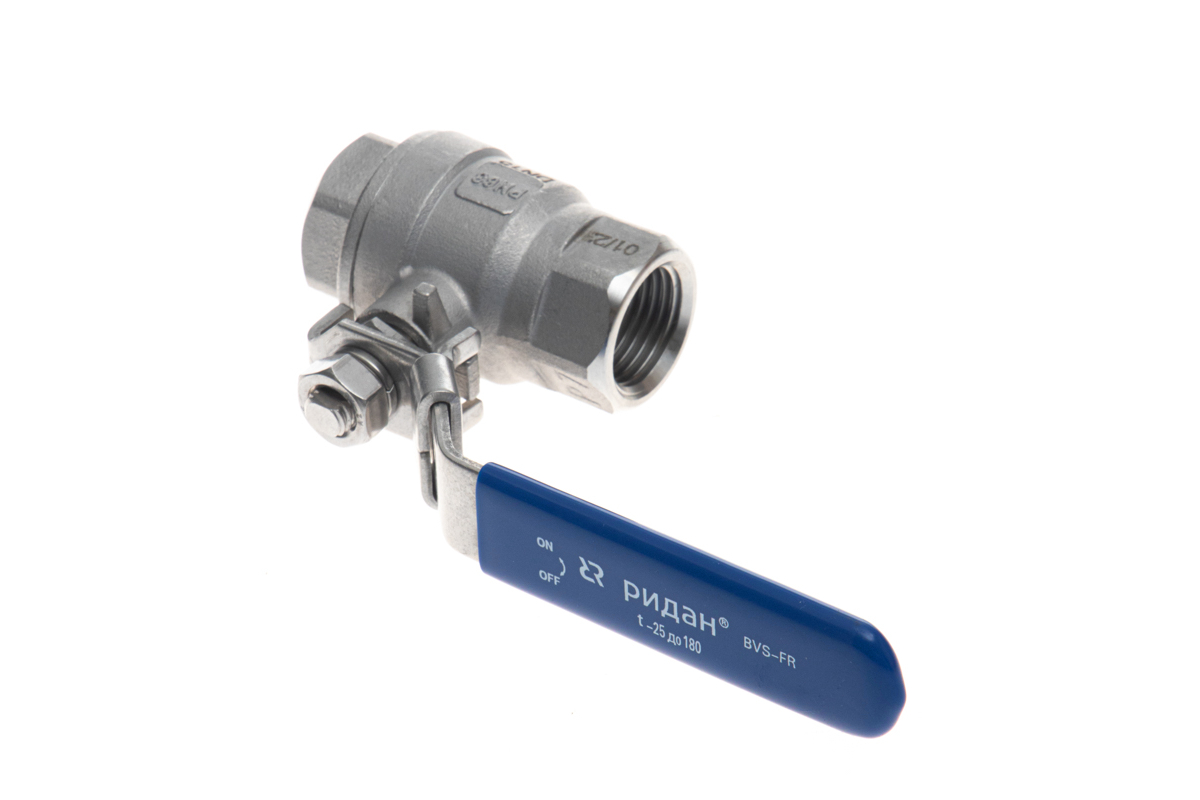 Ридан BVS-FR 082X4611R — Шаровый кран резьбовой DN10 PN63, с рукояткой, корпус — коррозионностойкая сталь, шар — коррозионностойкая сталь AISI316; уплотнение по шару R-PTFE (15% C)